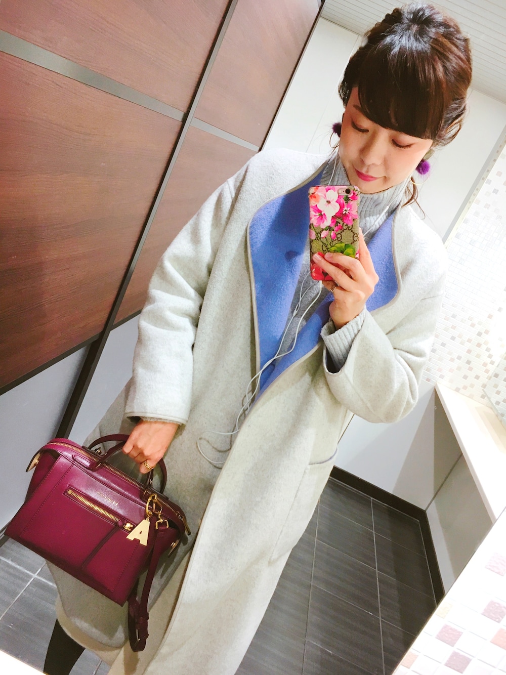 急に寒ーい⛄️❄️ 冬の爽やかカラーが好きです♡ このコートは昨年のだけど、 内側パープルのリバーシブル♪ ピアスはお店の名前忘れちゃったけど 300円で買ったもの♡ 女子は流行り廃りがはやいから プチプラで揃えます♡ ちなみにチャールズアンドキースのバッグはお気に入りショルダーの一つ♡