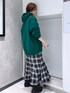 スカートでゆるコーデ 店頭でも大人気のフーディと合わせました♡ スエット L着用。Mもありますが、お尻までの丈感と袖のくしゅっと感が、女性にもおすすめです◎ スカート マーメイドなので、腰周りはスッキリしています!後ろゴムで履きやすい◎ タックで大きめプリーツみたいになっていて、動きが出るのがポイントです♡