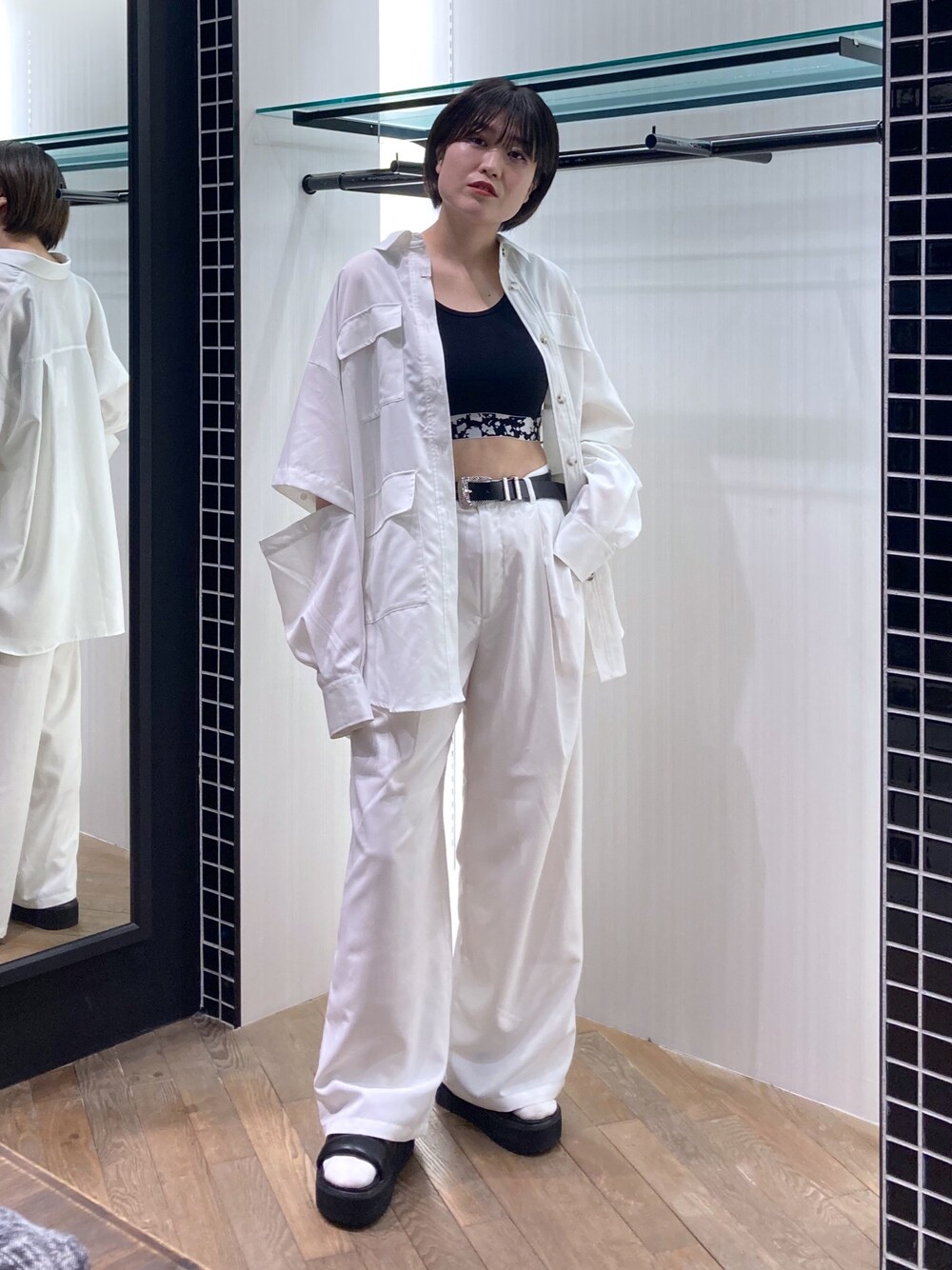 ♢セットアップ♢ この緩く着れるルーズさが可愛いです♡ シャツ ミリタリー要素のポケットで、カジュアルに見えます。程よい透け感とサラッと着れる素材感。袖はボタンで完全取外し可能なので、半袖にして夏もお召頂けます。 タンク コンパクトでタイトめサイズ。胸元もフィットしているので、安心感があります。 パンツ PAGEBOYの他のフリーサイズのボトムと比較して、ゆったりしているので、ローライズで履くのも可愛いです。丈長いので、低身長さんは厚底合わせがおすすめです。 サンダル 店頭でも大人気!!とにかく軽いです!安定して履きやすく、ボリューム感が今っぽい。 Instagramも更新しております🫶 @cocokael