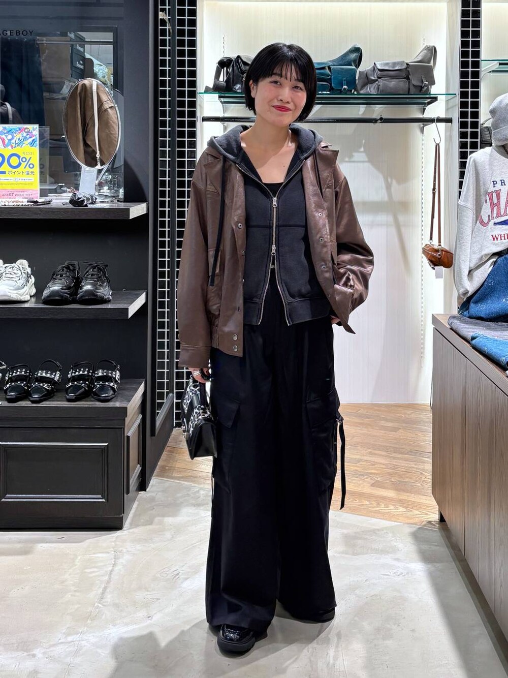 ~26日11:59まで20%ポイント還元中❤️🔥 合わせて、期間限定オフもしてます! アウター ソフトフェイクレザーの名の通り、薄手の柔らかい生地で軽い!! ゆったりなので、パーカーやスウェットの上からも羽織りやすい!25℃~20℃の朝晩の気温だと、半袖やシアートップスの上にこちらを羽織ると丁度いい🙆♀️ ロングボトムにもミニボトムにも、スカートにも相性抜群な丈です! パーカー M購入 スッキリ着れる秘訣は、腰丈とWZIPだからです! 抜け感も出せるのが嬉しい♡ デザインもシンプルなので、30オーバーの私も着れる! パンツ M購入 前回のカーゴスラックスより、Mサイズはゆったりな作りです! ウエストも後ろゴムという事もあり、他のMサイズのボトムより大きめでした!いつもM履きますが、ヒップがピッタリしないのが嬉しい!(私のヒップサイズ95-92辺りです) サラサラな生地で、透けない薄手だったので、9.10月のまだ夏な気温にも履きやすい!