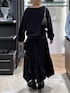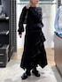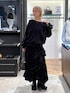 クールなスカートスタイル😎 スウェット 腰骨辺りまでの丈でスッキリ見えする着丈が、寸胴に見えずスタイルアップして◎リブで止まって、溜まりが作れるのも可愛い! 肩のファスナーを開けて、ワンショルダーで着ても、大人な肌見せスタイルが楽しめます♡ スカート このデザインには珍しいウエストオールゴム!! ランダムなティアードが、モードにもフェミニンにも合わせ方で変幻自在👏 ジグザグな丈で、160cmオーバーだとしっかり足首見える丈なので、155~158cm台のお客様にも挑戦しやすいですよ!