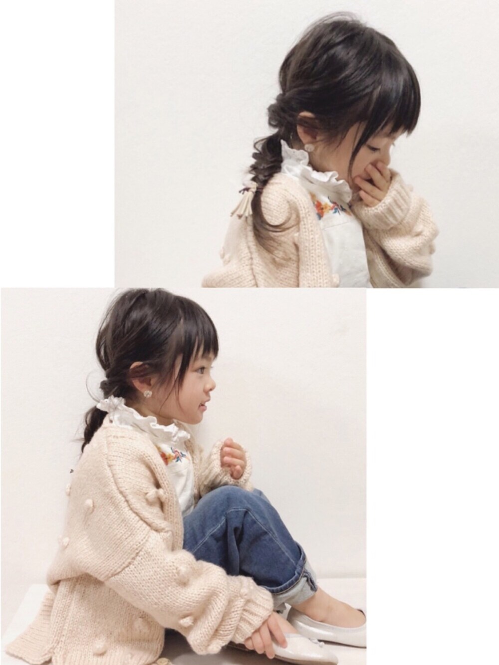 見てくださりありがとうございます☺︎ GAP新作の刺繍ブラウスと フリル襟♪ デニムは男の子コーナーから 110のオーバーサイズを👖 オーバーサイズだと自然とハイウエストになって可愛い😂 バレエシューズは去年のです。 oteteのイヤリングとヘアゴム 本当かわゆい💕