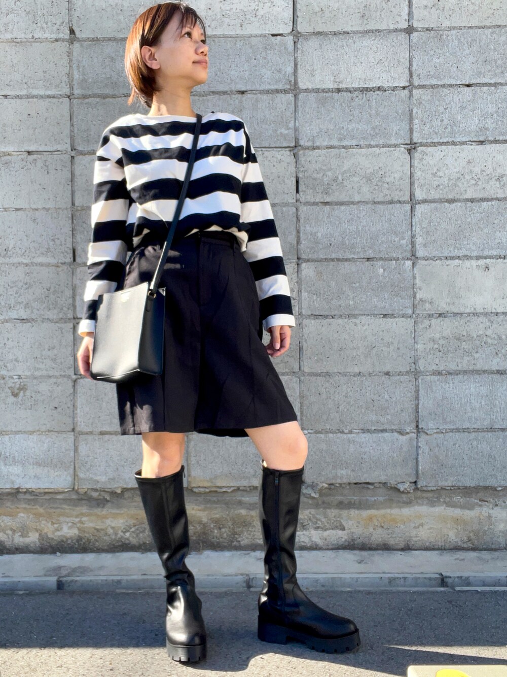ロングブーツはクッション効いてて 歩いても足痛くない🤭 めっちゃ履きやすい💕 ハーフパンツ🩳も履きやすい👍 めっちゃモノトーンコーデになっちゃったなー😅