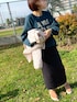 楽ちんご近所コーデ🌸 今日はトレーナーがちょーどいい👍 スカートはストレッチ効いてて動きやすい❤️ 色違いも欲しいくらい🙌 靴は👟楽すぎてこればっかり履いてます✨可愛いし楽チン❤️