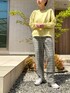 春らしい色味☘️☘️ グレーのチェックパンツはトップスが合わせやすい❣️ スニーカー👟が活躍する季節になってきた😚