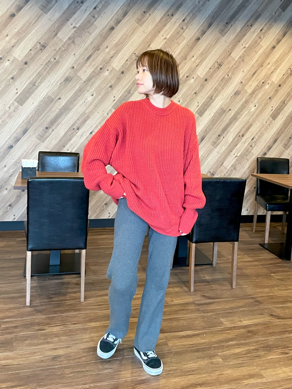 トップスもパンツも着心地抜群で暖かい👍 やっぱりオレンジ色🧡好き❤️ 下もスカート、パンツと合わせやすいです♪