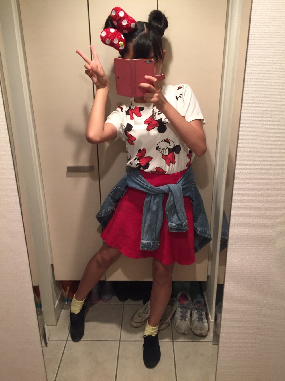 明日ディズニーシーに行きまーす💕 ミニーちゃんの格好してみましたー