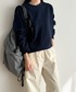 ネイビー×ベージュ◎ シンプルでスッキリしたシルエットのトレーナーとルーズなチノパンを合わせて大人カジュアルな着こなしに✨ メガネ、ベルト、ローファーの小物合わせで少し綺麗めな印象になるように組みました‼︎