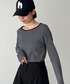 ボートネックなのと、程よくフィット感のあるシルエットが大人っぽいボーダーロンT👕 細ボーダーなのも今っぽくてかわいい♡ パンツもウエストゴムの楽ちんパンツなのにシルエットきれい◎