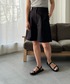 ◎ブラックコーデ 全身黒でも透け感だったりタックの入った綺麗めなショートパンツを履くことで、軽くて大人っぽい印象に✨ メッシュニットはロゴ入りのTシャツを仕込んでロゴをうっすら透けさせるのが可愛い