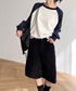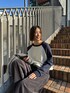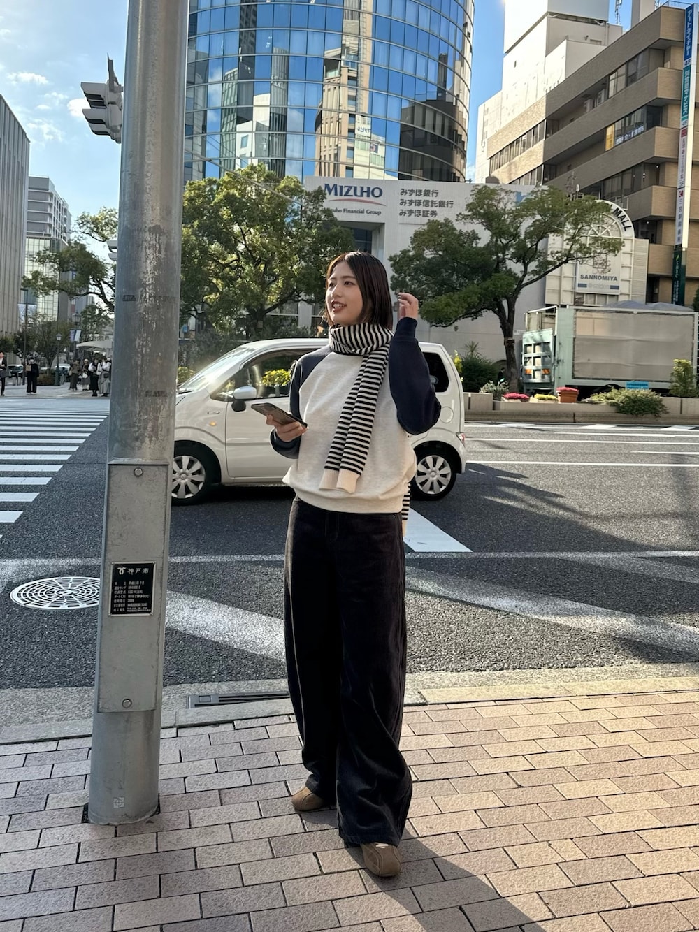 ◎カジュアル ラグランの配色がかわいいお気に入りトレーナー♡ トレーナー×ダボっとパンツ◎ ボーダーマフラーを差し色にシティガールっぽくしてみた💫