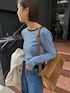 ◎レイヤード ニットパーカーの差し色にブルーのボーダーロンTを合わせてみました💫 デニムでシンプルに合わせて、バッグでスウェード素材を取り入れたのもポイント⇦ 大人カジュアル♪