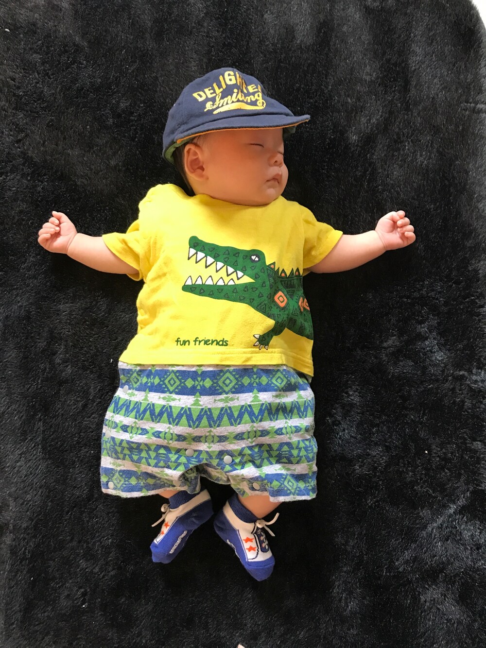 今日も暑いので半袖コーデ♩ まだ生後2ヶ月経ってないのに 首もほぼ座ってるし 随分しっかりしてきたなー!