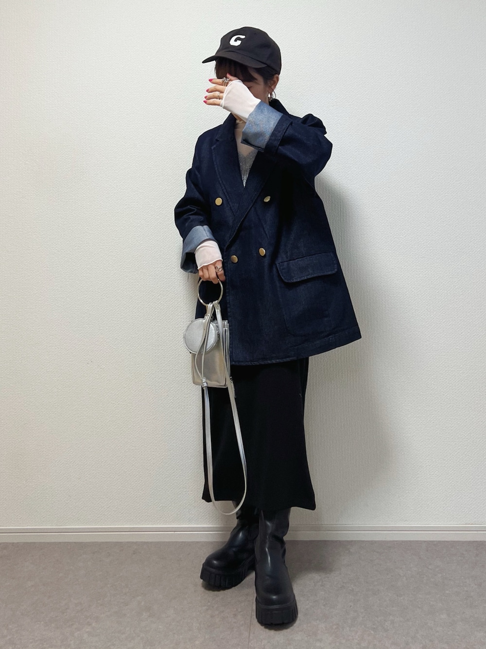 ɴɪᴄᴏ.ᴀʏᴀのデニムジャケット「2wayスリットスリーブ ルーズデニムテーラードジャケット/ブレザー」を使ったコーディネート