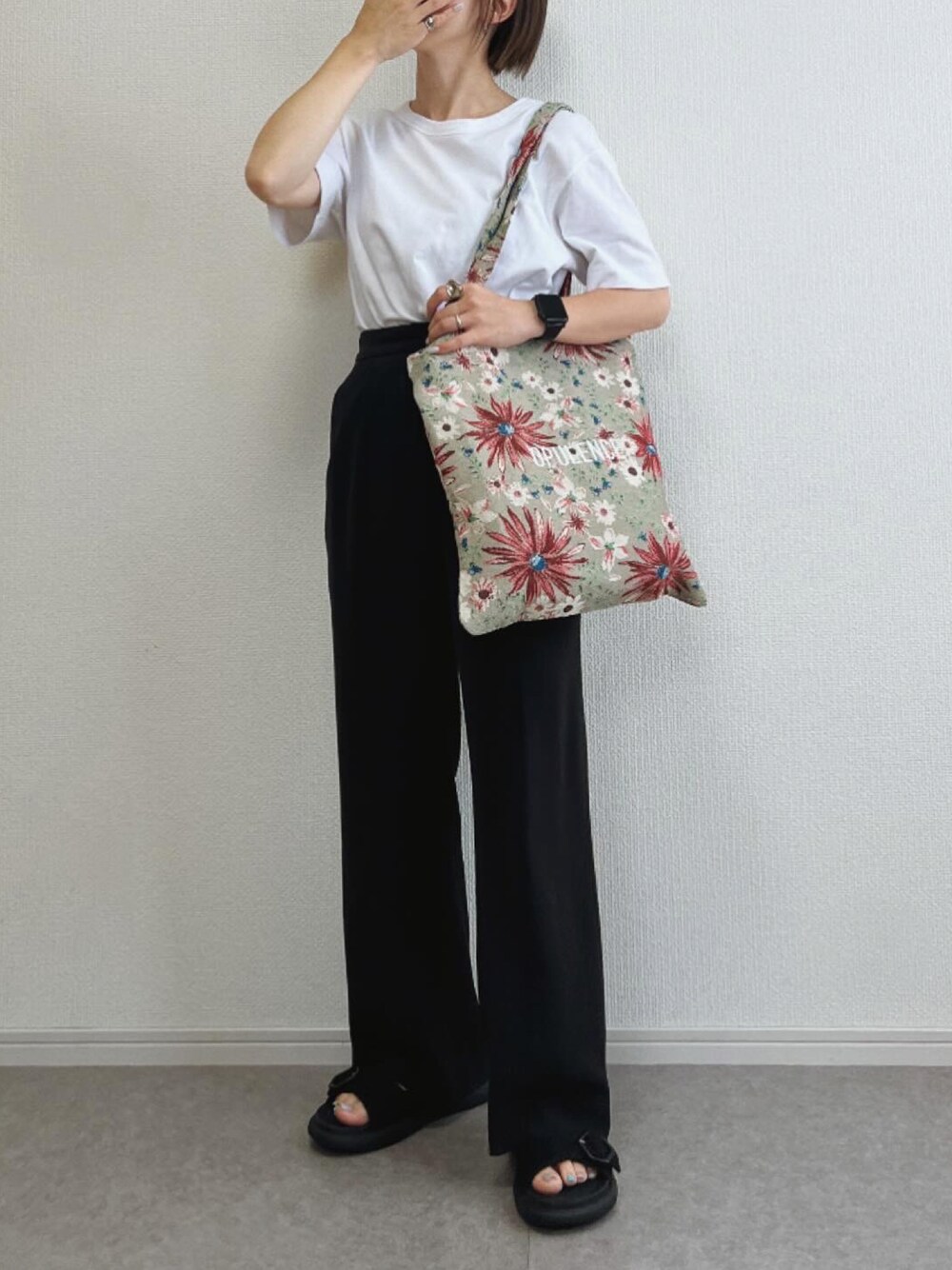 opulence_tokyo の POPUPでGETした 花柄のトートバッグっ!! モノトーンにポイントで 合わせてみたけど可愛いかった🌼