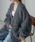 ベロアパンツに もけもけカーディガン🌼🩶 Instagram▶️ayn_cnt