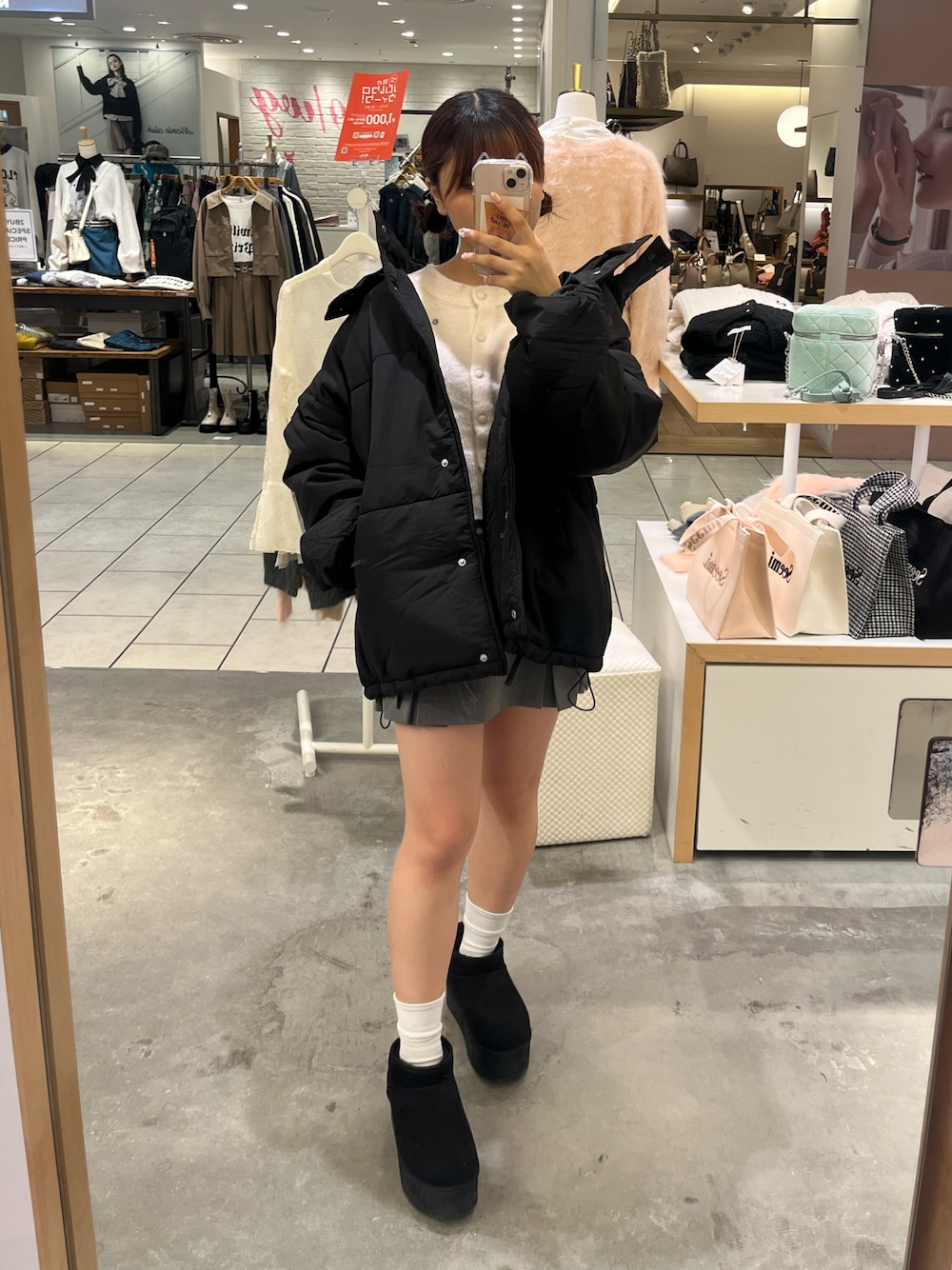 今年トレンドのミドルダウン! ナイスのは軽くて暖かいので真冬はこれ1枚持っておけば安心! フードは取り外し可能で裾は絞りが調節できます◎