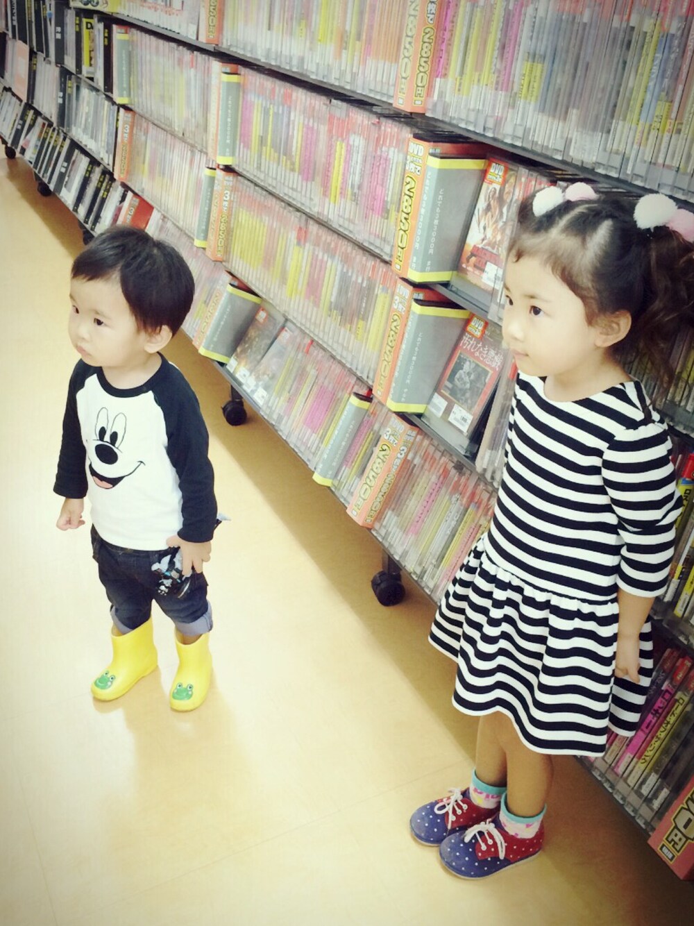 ビデオ屋さんにて、妖怪ウォッチに夢中…😩 早く動いておくれ…👫