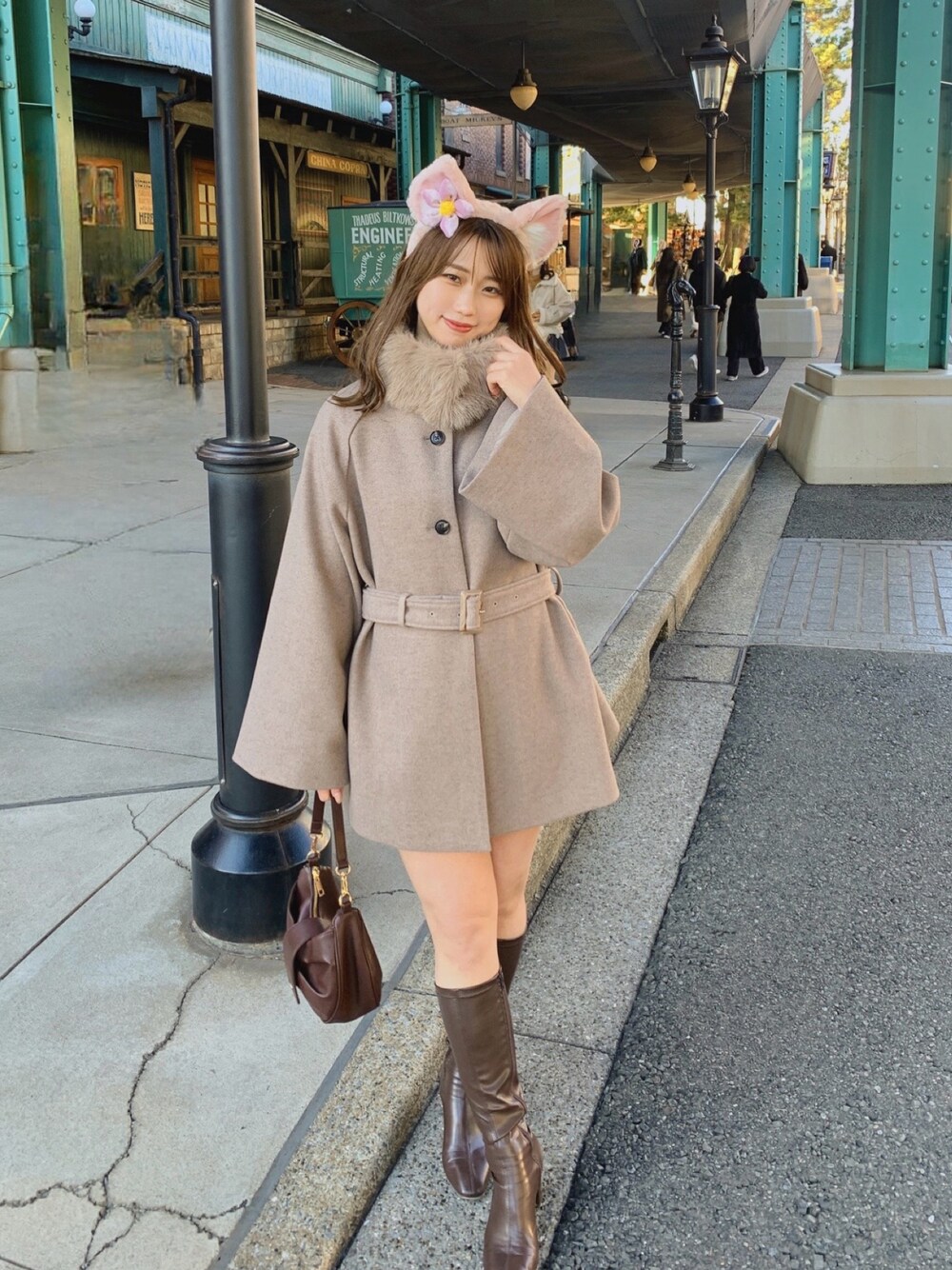 160cm / 骨格ウェーブ /イエベ秋 【outer】グレージュ着用 大人可愛いケープコートです!♡ 腕周りも広めなので、厚手のニットも着込めます!✨ ファーも取り外し可能です! スタンドにしても襟にしても可愛いです♡