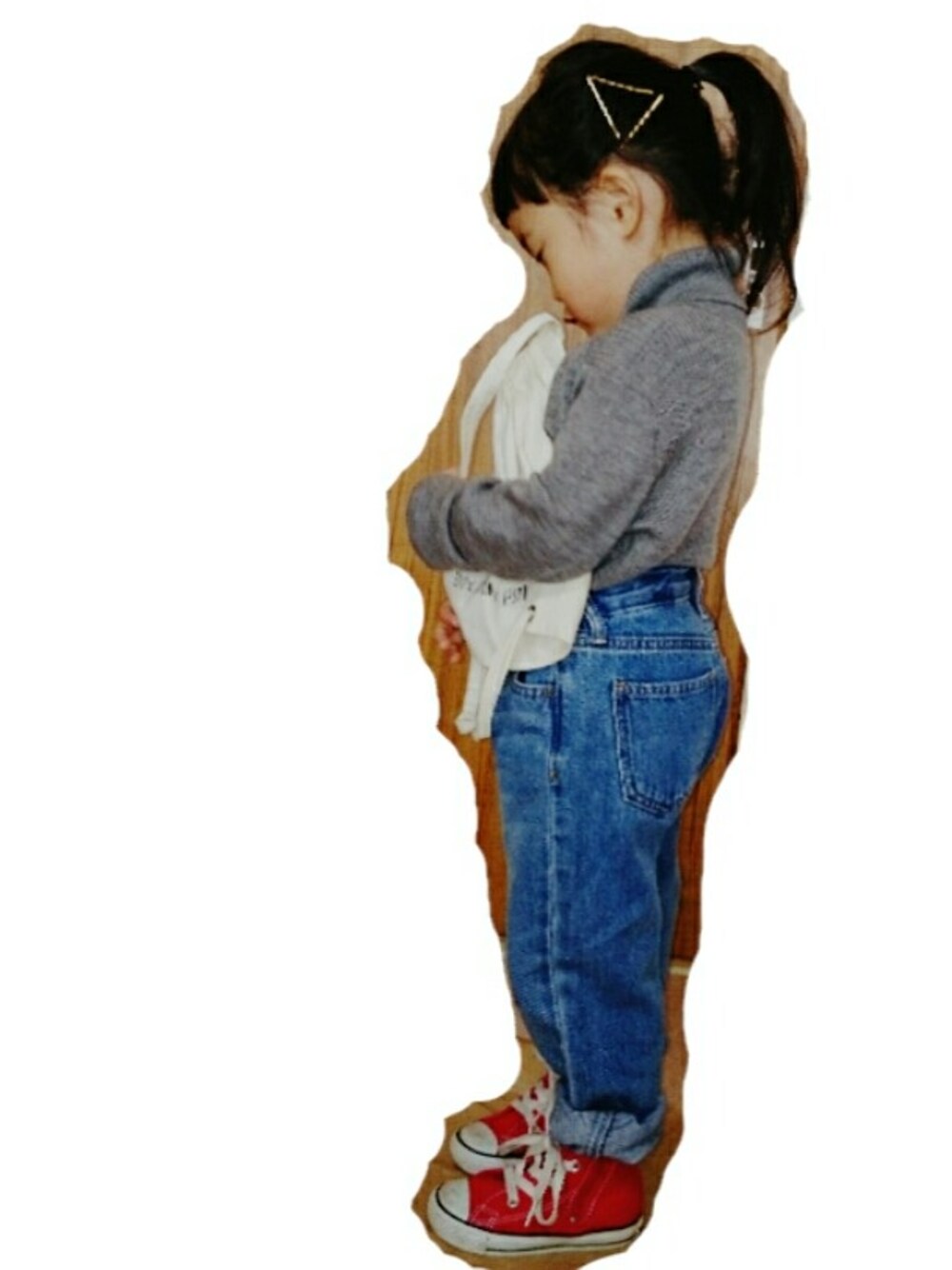 GUデニムはでかめを👖 80年代ぽい薄デニムのハイウエストが好きです。後ろのかんじも😂