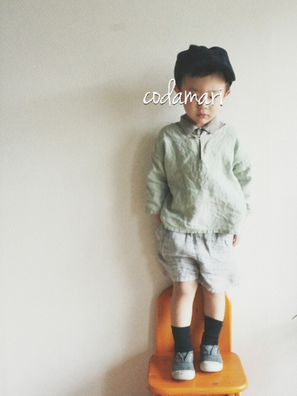秋だけど(^^) ハルイロプルオーバー♪ 中に5分袖のシャツを着て。 衿がちらりと見えて可愛い~ いまの季節にぴったりです シャツ・プルオーバー・帽子/codamari 短パン/ハンドメイド