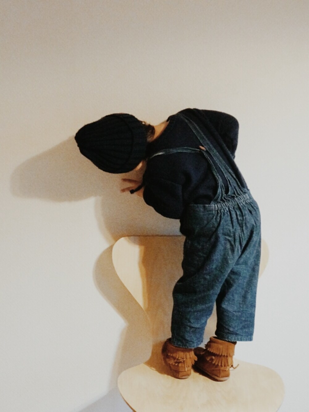 ストール・サロペット/codamari ニット/UNIQLO 靴/ミネトンカ 帽子/discegaudere