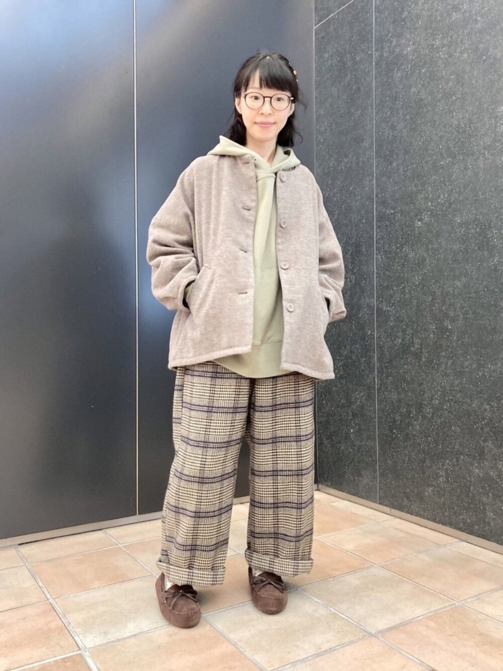 ご覧頂きありがとうございます! トップスは、丈はそれほど長くないのですが、ゆるっとシルエットのパーカーです。 パンツは、冬に嬉しい裏地ありの起毛パンツです!