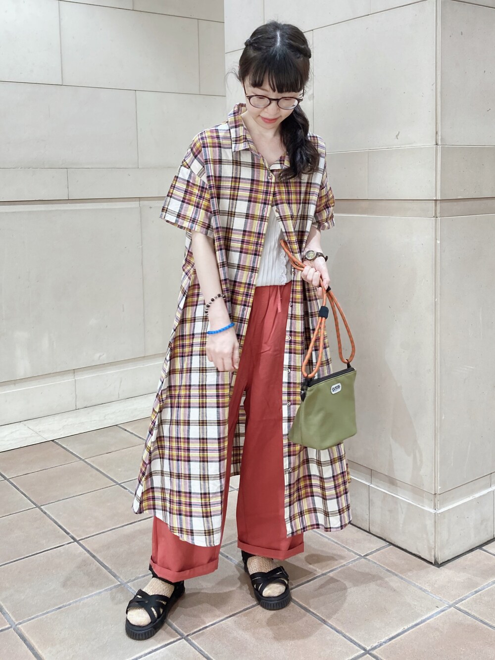 アリーのシャツワンピース「【クールコットン】柄アソートシャツワンピース」を使ったコーディネート