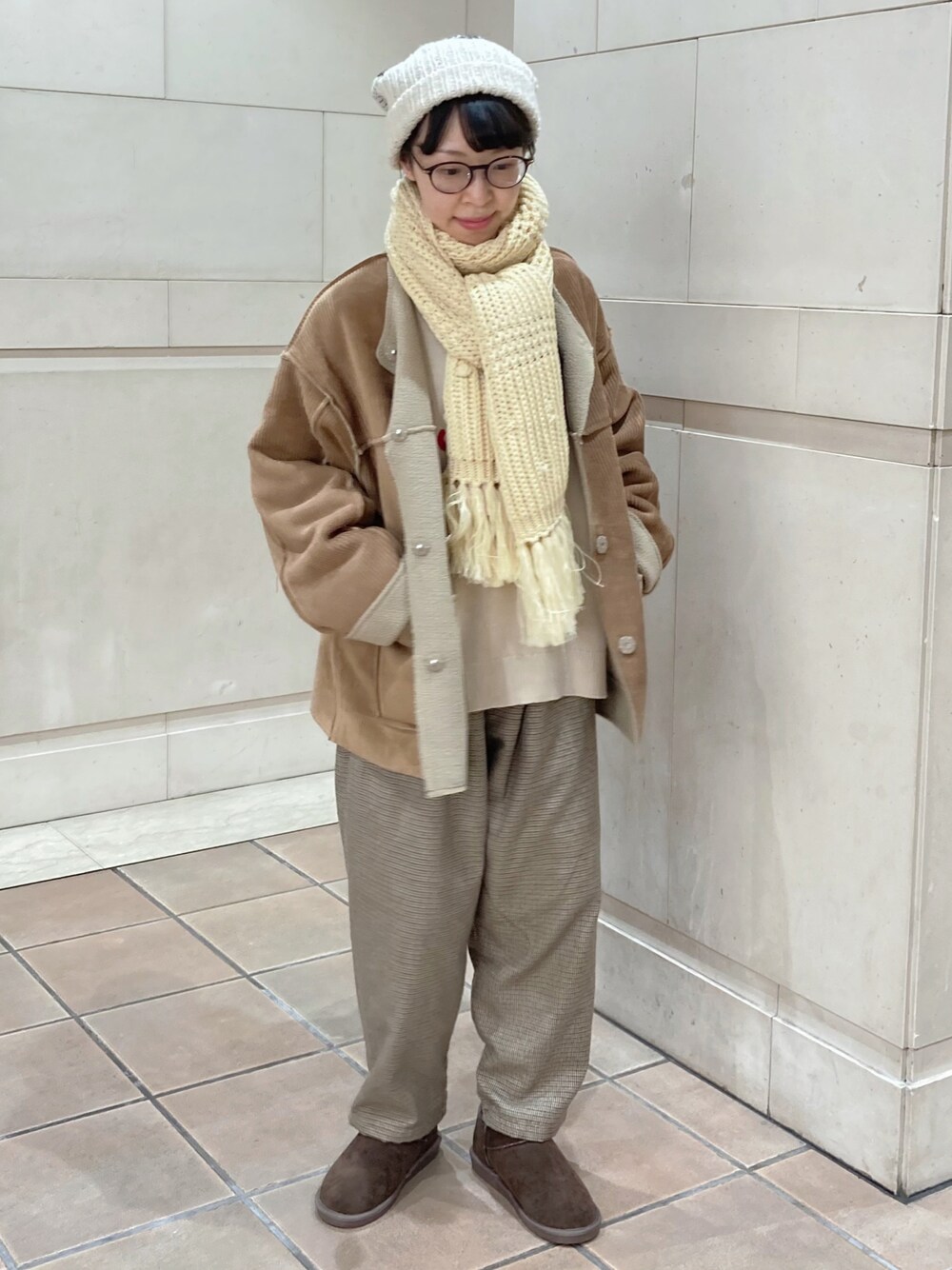 アリーのニットキャップ/ビーニー「ペルーニットモチーフ柄ワッチ」を使ったコーディネート