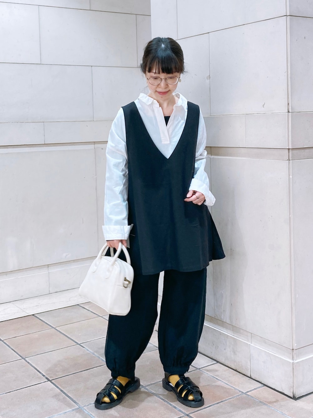 ご覧頂きありがとうございます! 白のスキッパーチュニックに、深めVネックのベストで、モノトーンコーデです!