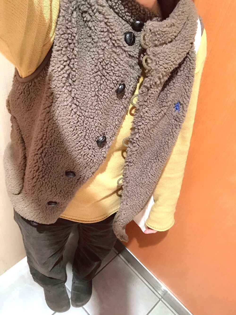 ___chairoのその他アウター「【GYMPHLEX(ジムフレックス)】ボアボタンベスト」を使ったコーディネート