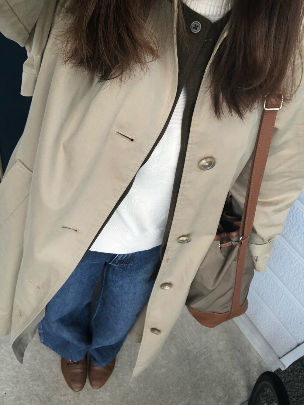 ___chairoのステンカラーコート「交織シャンブレー belted sten CO」を使ったコーディネート