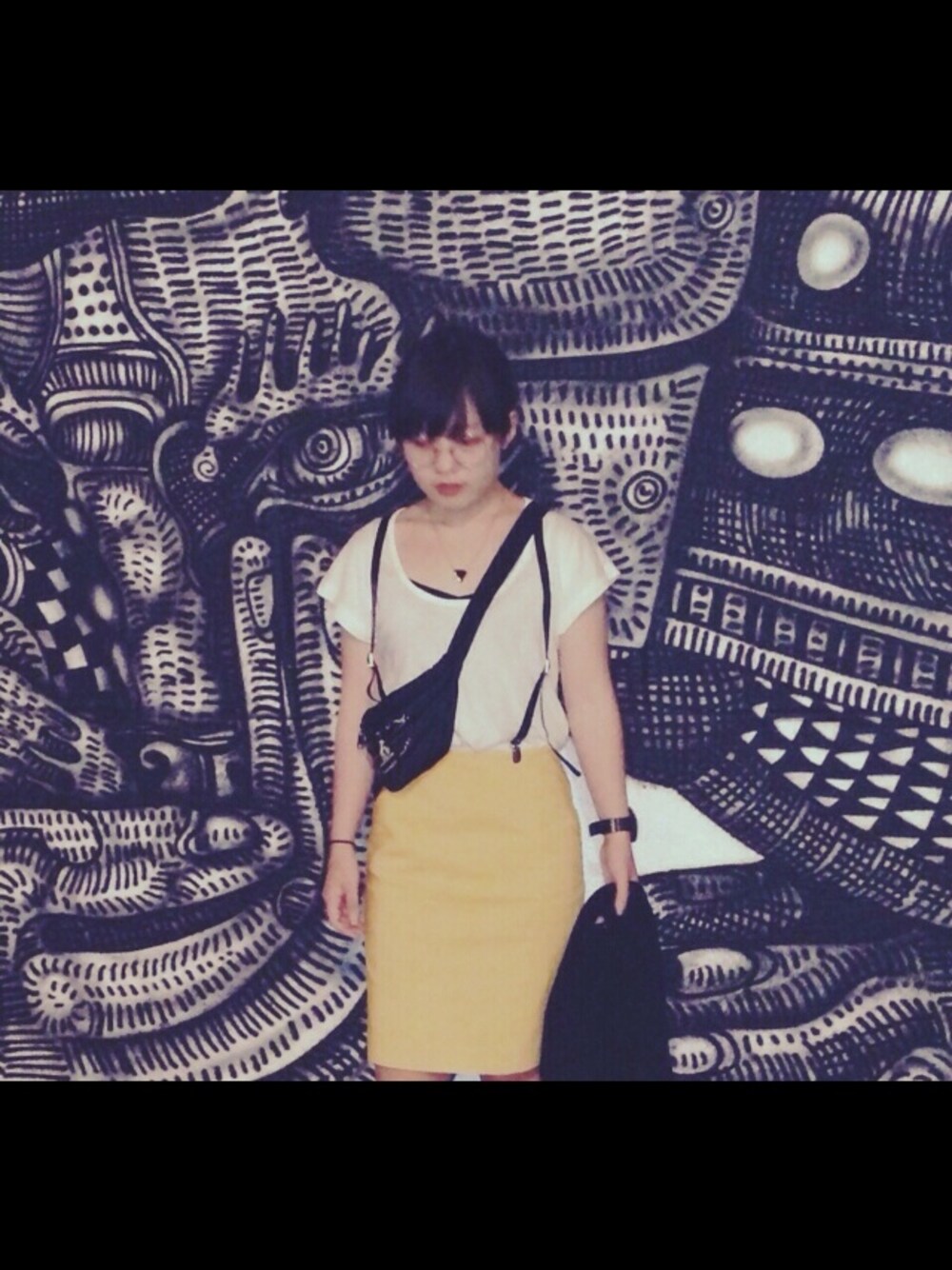 サヨナラ日曜日。 トップス:used スカート:Forever21 サスペンダー:used 丸メガネ:used カバン:used くつ:dholic