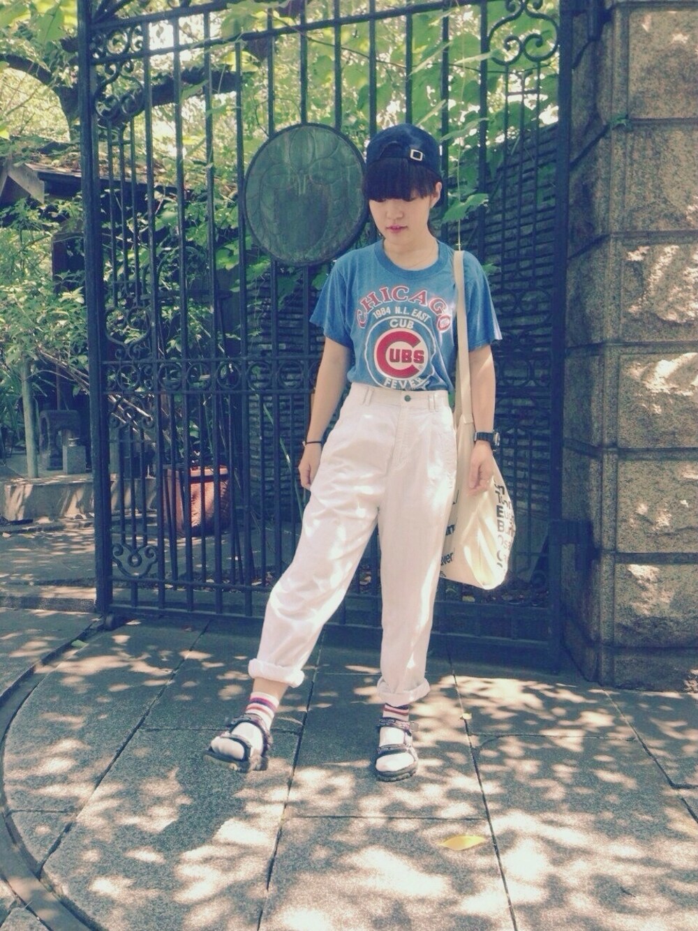お盆休みなんてなかった。 トップス:used パンツ:used くつした:tabio サンダル:teva キャップ:adidas バッグ:American Apparel