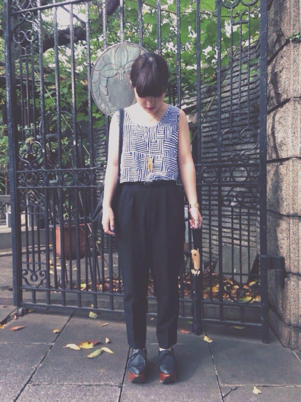 ほしの、美術館へゆく。 トップス:American Apparel ボトム:used ブーツ:DHOLIC 折りたたみ傘:American Apparel