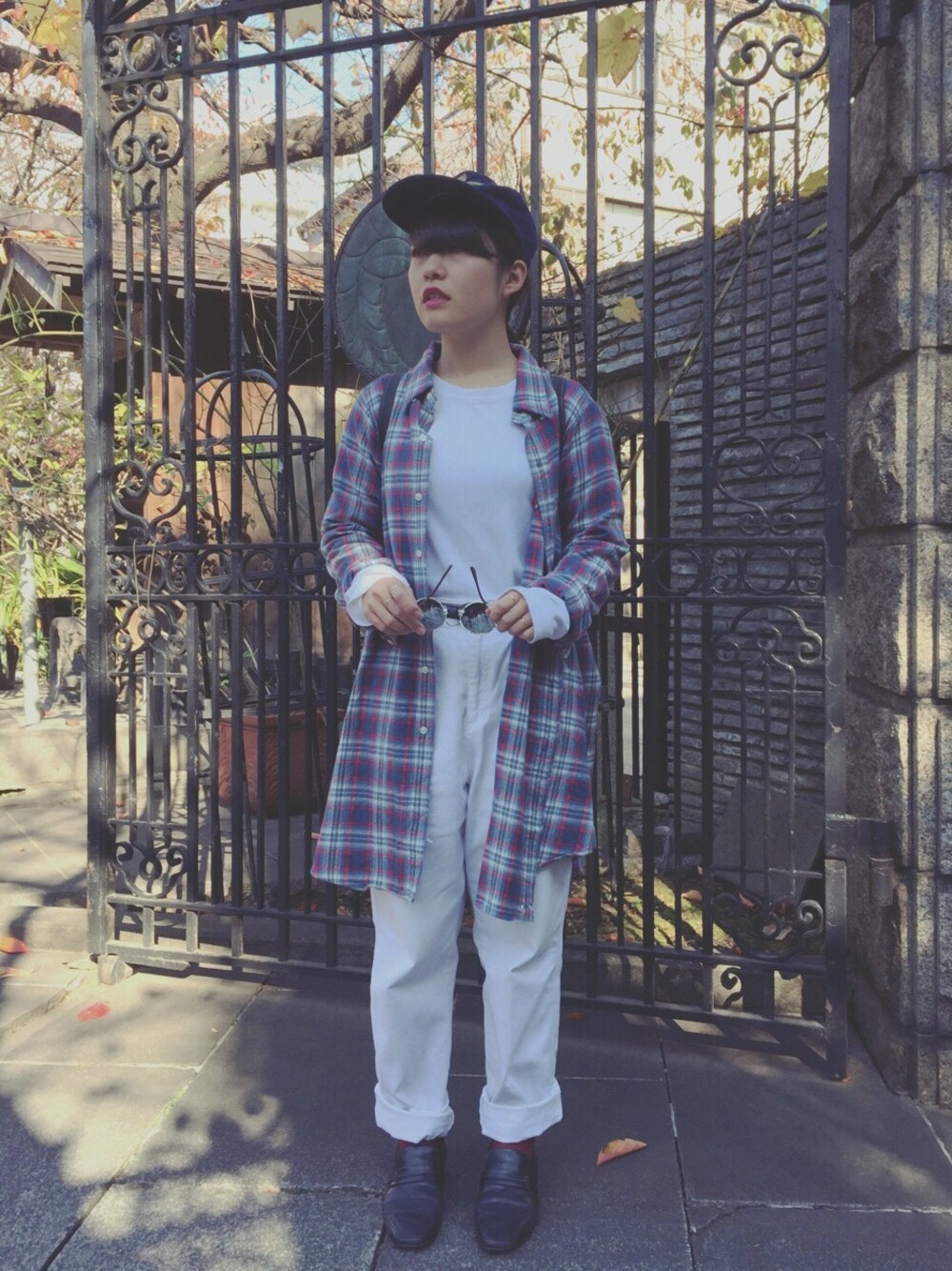 なんだかんだいって和食が一番すき。 シャツワンピ:Ralph Lauren トップス:Ralph Lauren パンツ:used くつした:tabio ローファー:used