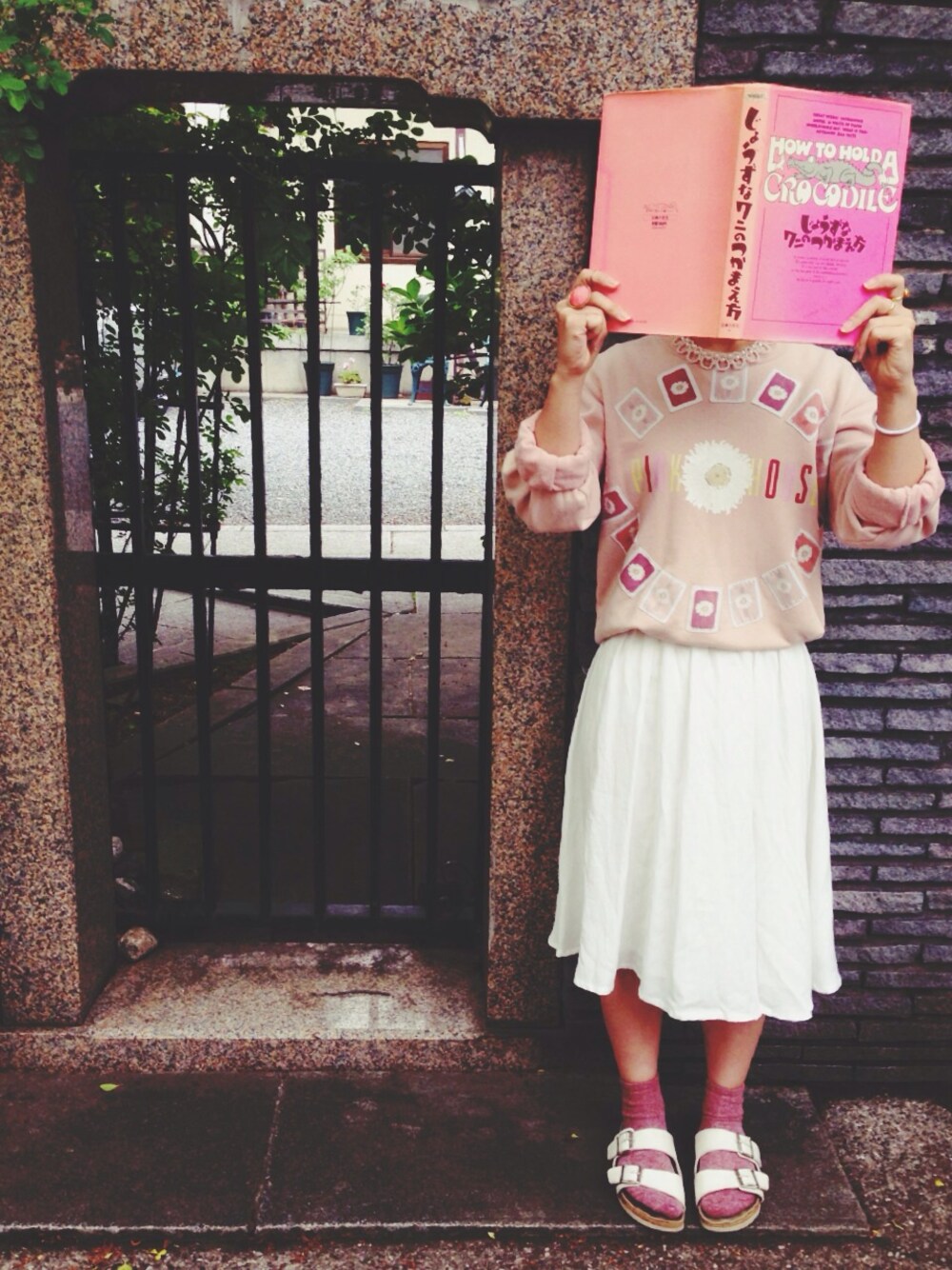 ワニのつかまえ方、勉強中 スウェット:PINK HOUSE(used) スカート:Linetta サンダル:birkenstock 本:じょうずなワニのつかまえ方