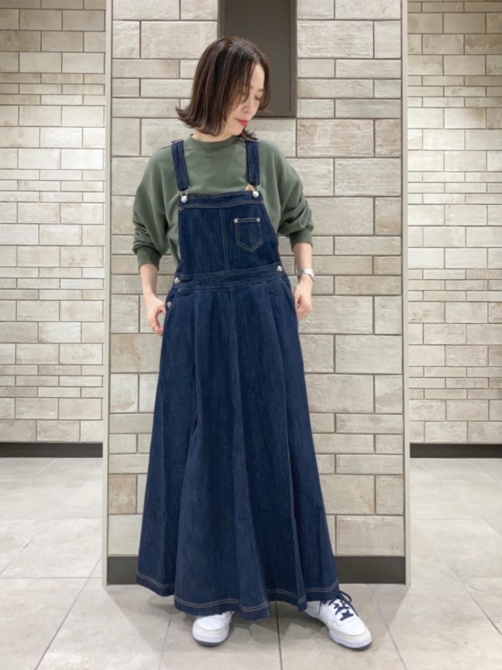綺麗なフレアシルエットが素敵なジャンパースカート、インナーのカラーは抑えてケルティのオリーブカラーにしてみました。 この秋大人可愛いワークスタイルいいがでしょうか? 商品名: プレミアムデニムコレクションデニムサロペットスカート サイズ感: 163cm、Lサイズでバッチリでした。長さはショルダー部分で調節可能です。コンパクトな胸当てがフレアシルエットを引き立てます。 素材感: 見た目に反して軽量です。通年でお召しいただけます。
