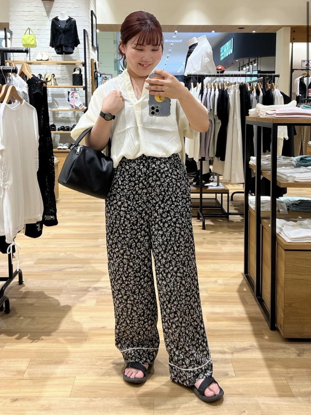 花柄プリントパイピングパンツを着用しました!サラッとした質感が◎程よいサイズ感でウエスト位置高めなので足が長く見えます!