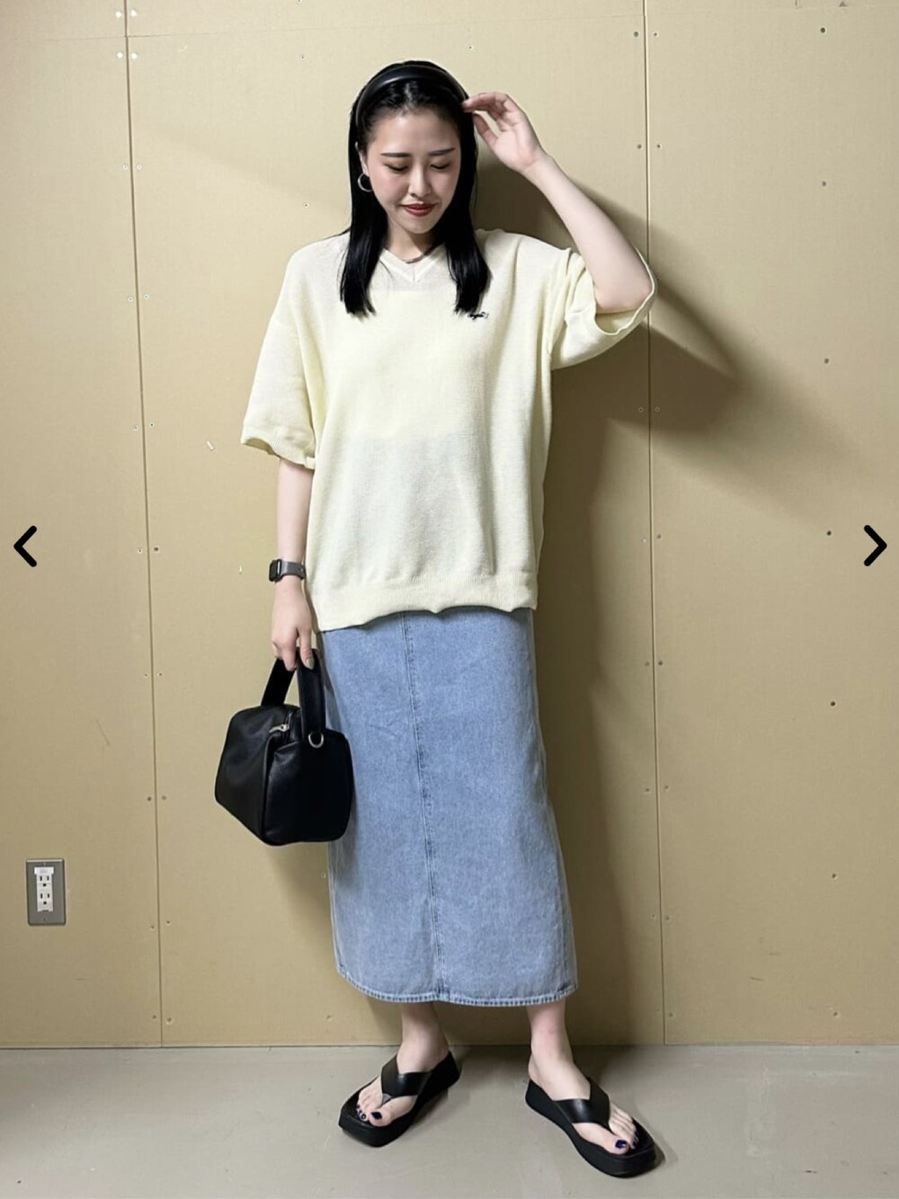 PENNEYS別注TheFOXニットTシャツ 着用サイズ:Mサイズ 程よい透け感で夏でも涼しいです♪ ニットなのに全くチクチク感ないのでストレスフリーで着ていただけます◎