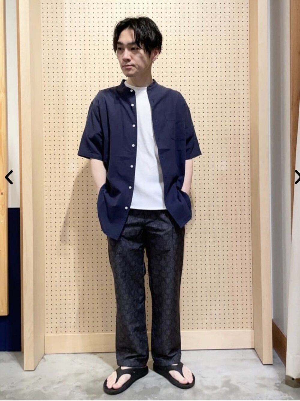 人気のリネンシャツをダマスク柄パンツでシックに合わせてみました。 暑い時期にも快適に着ることができるリネンシャツにドライ機能がついたボトム合わせで猛暑もオシャレに過ごせます。 シャツを脱いでTシャツをタックインするとすっきりとした大人な雰囲気を出せます。 足元はサンダル合わせがこなれた印象になります。