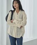 coen official(coen)のシャツ/ブラウス「レース開襟シャツ」を使ったコーディネート