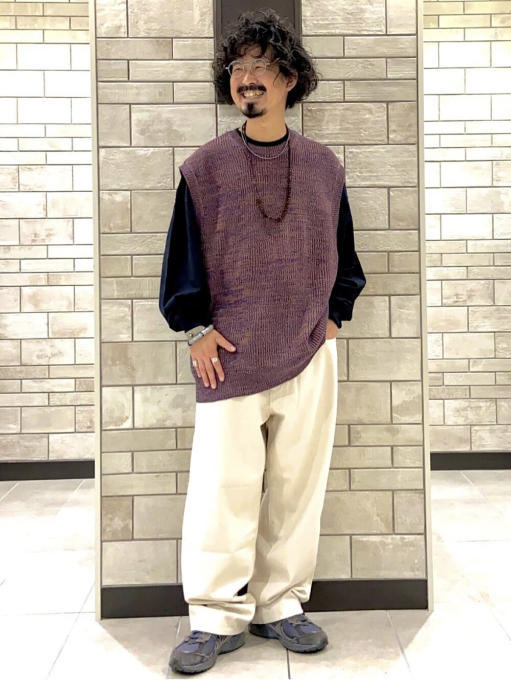 秋物入荷してます! 今回の主役は、秋らしいカラーのニットベストです。 ポリエステルなので洗濯OK! 半袖〜長袖、Tシャツ〜シャツと、 さまざまなアイテムに合わせることができます。 インナーのTシャツとボトムスは かなりビッグシルエット。 こちらも何にでも合う、便利なアイテムです!