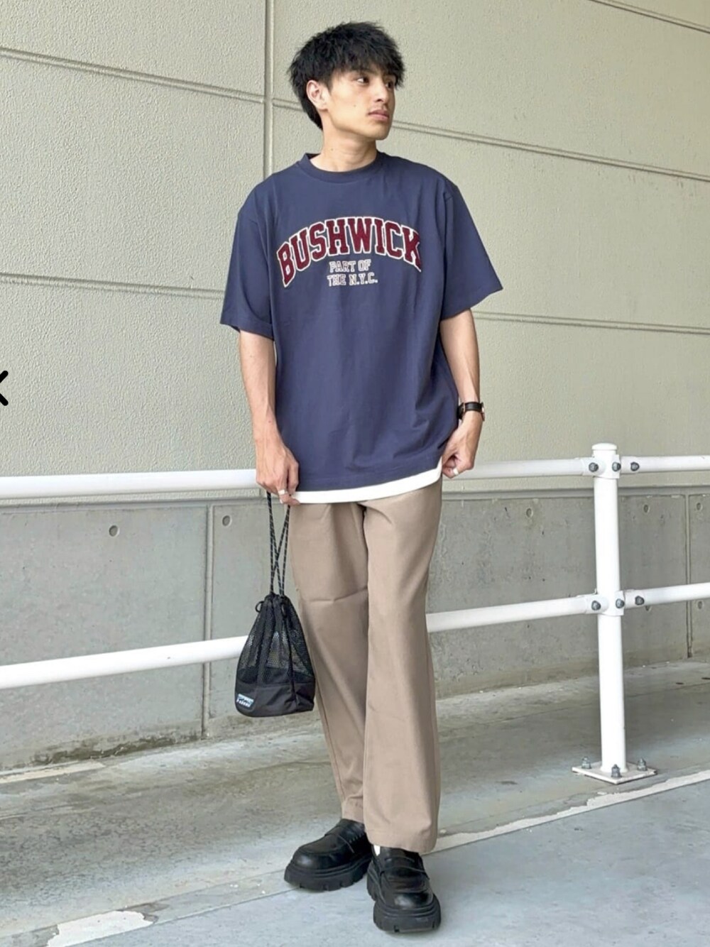 ロゴTコーデ カジュアルなロゴTに綺麗めなパンツを合わせてみました。 サガラ刺繍の立体感あるプリントがとてもかわいく、シルエットもゆったりとしてるのでサラッと着ていただけます。
