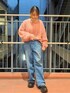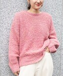 ☆ブークレーニット×デニム 立体感のあるブークレニットは 1枚で着映えしますが襟ぐりがやや広めに開いているのでロンTチラ見せしても◎ ゆったりシルエットなので 重ね着しやすいサイズ感です ハーフパンツにロングブーツで合わせても 可愛いですね◎