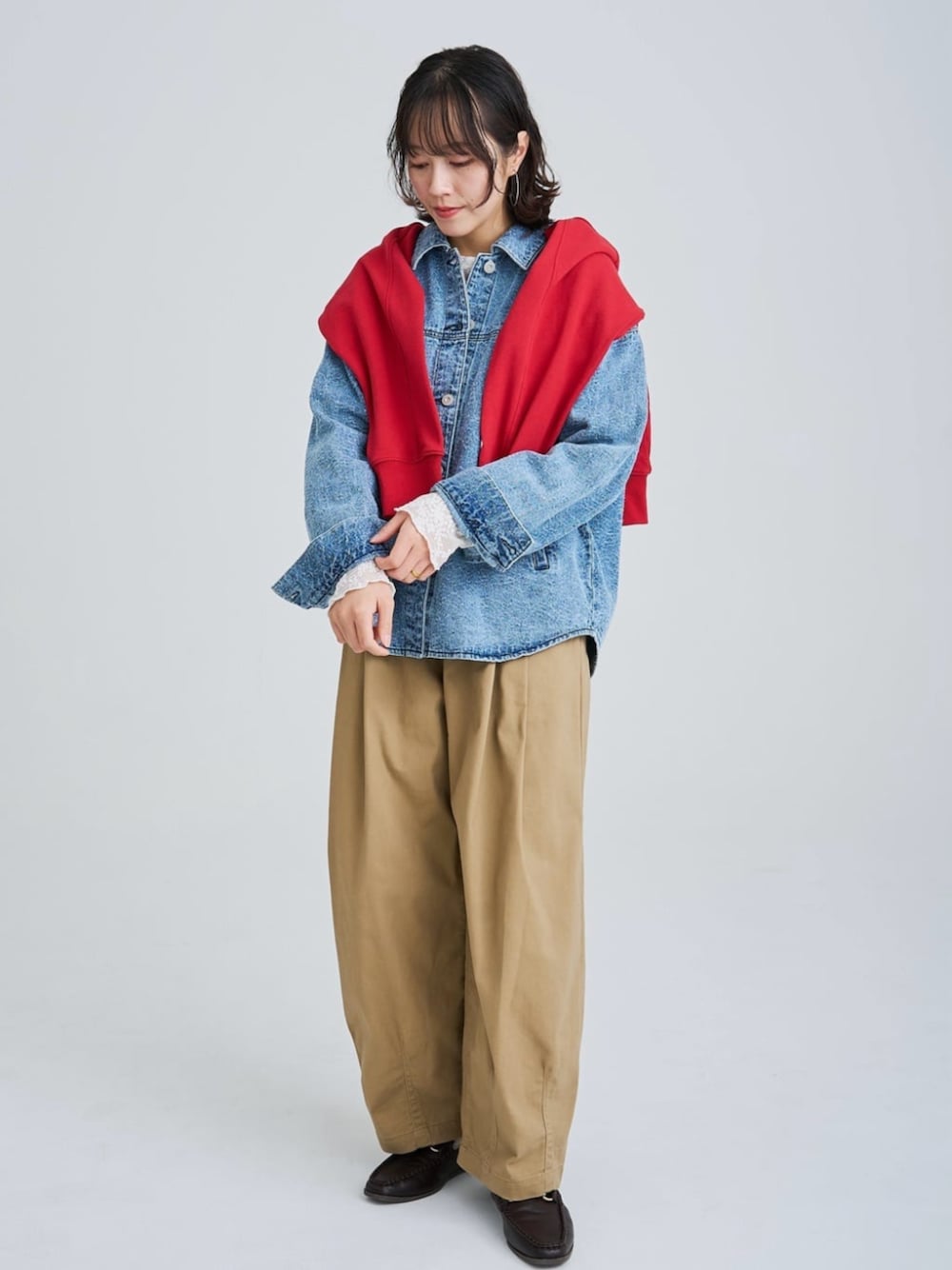 coen official(coen)のチノパンツ「【再入荷・新色登場】ランタンパンツ(Youtube紹介アイテム)」を使ったコーディネート