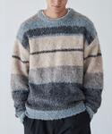 注目度の高いブークレーニット。 グラデーション配色になっており、着るだけでトレンドスタイルを楽しめます。 こちらのWEB限定色はピッチの異なるラインデザインで、1枚でもインナーの差しでも存在感のある1枚。