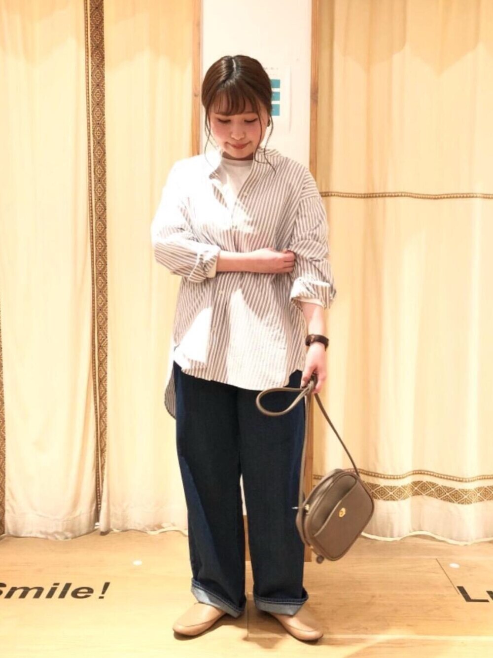 爽やかなストライプシャツに、春らしくデニムでカジュアルに合わせました🐸☀️