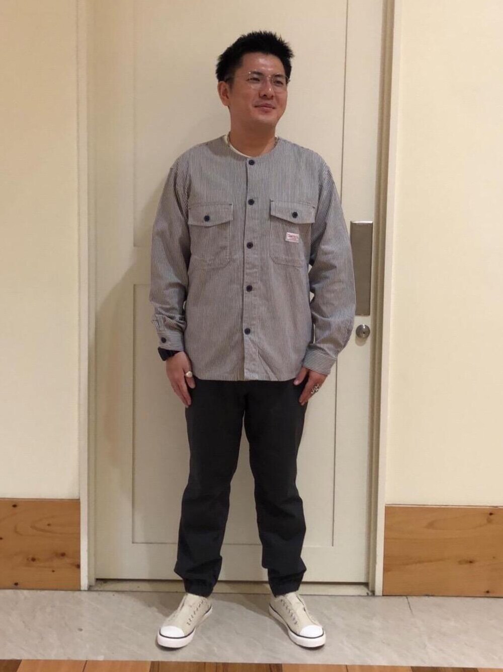 coen やののシャツ/ブラウス「SMITH’S別注ノーカラーシャツ#」を使ったコーディネート