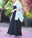 キレイめキャミワンピにデニムを合わせた、キレイめカジュアルなコーディネートです! デニムを合わせることでカジュアルさとリラックスさを演出しました。 ワンピはスリットが大きめに入っているので、パンツを合わせるとパンツのデザインがチラッと見えてとても可愛いです◎ 商品名:マットサテンAラインキャミワンピース サイズ感:Mサイズ着用。 素材感:光沢感があり、生地が程よい薄さなので揺れた時のシルエットがとても可愛いです!